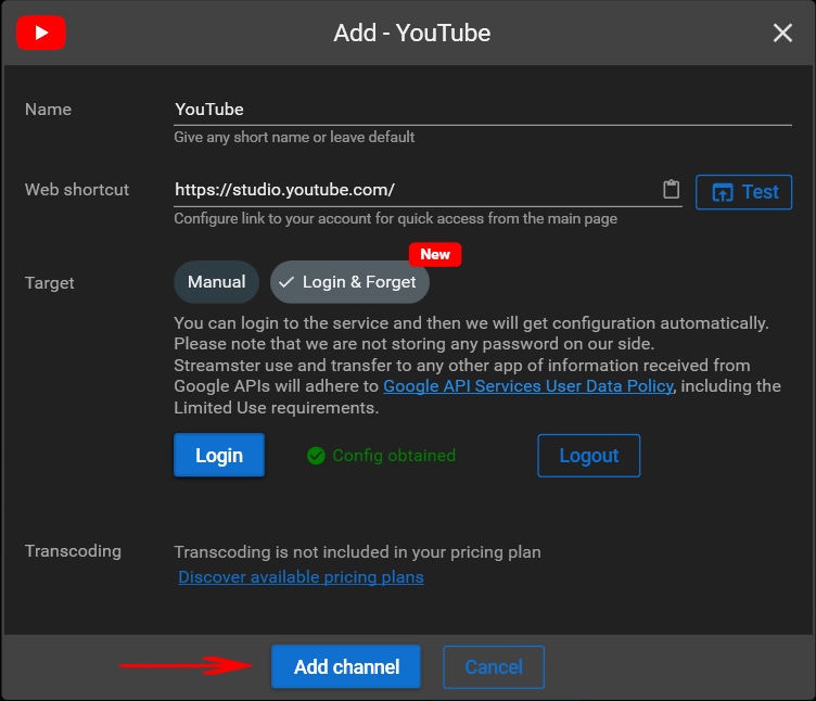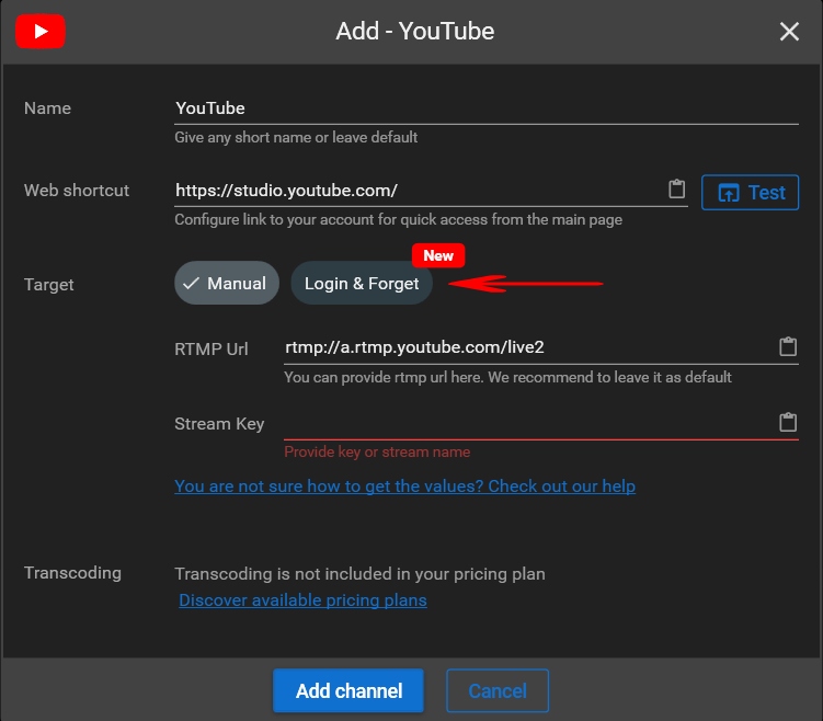 Step 3. Check if the selected channel supports authorization. If yes, you will see “Login & Forget” button.