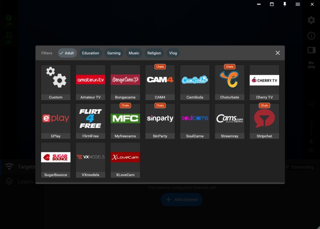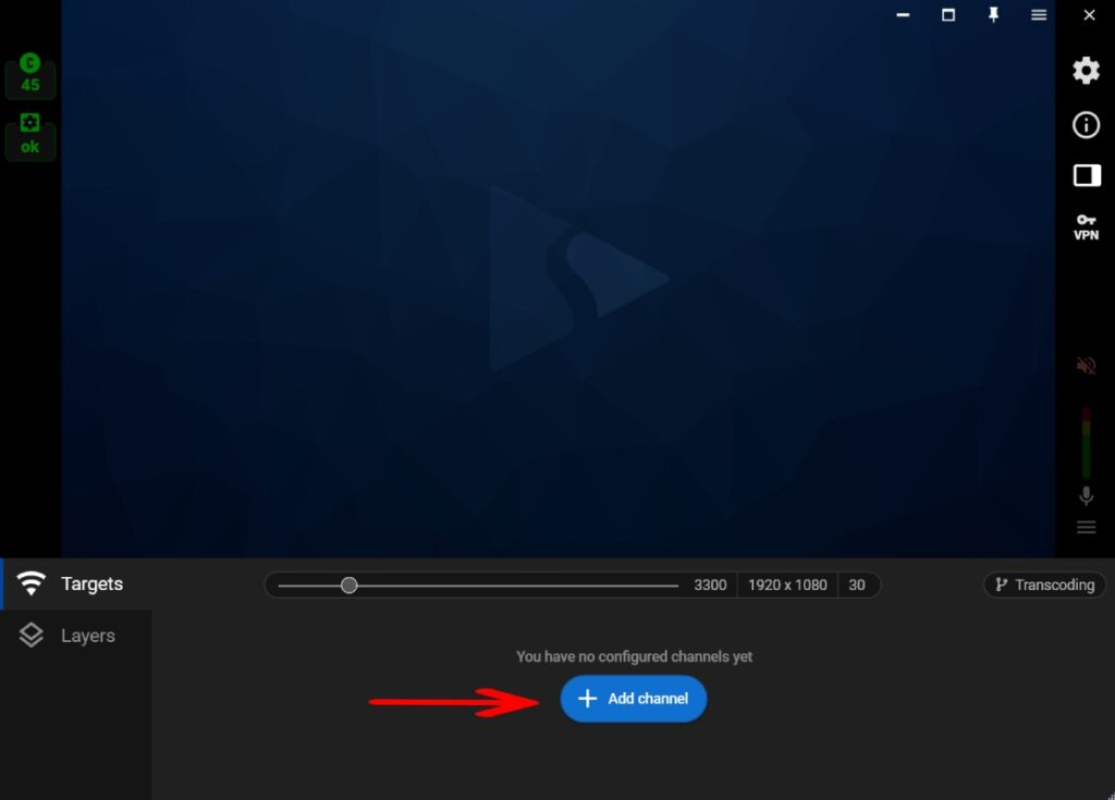 Step 8. In the Streamster app, go to the “Targets” tab and click the “Add channel” to set up streaming to one or multiple platforms. Read more about channels set up in the Streamster app.