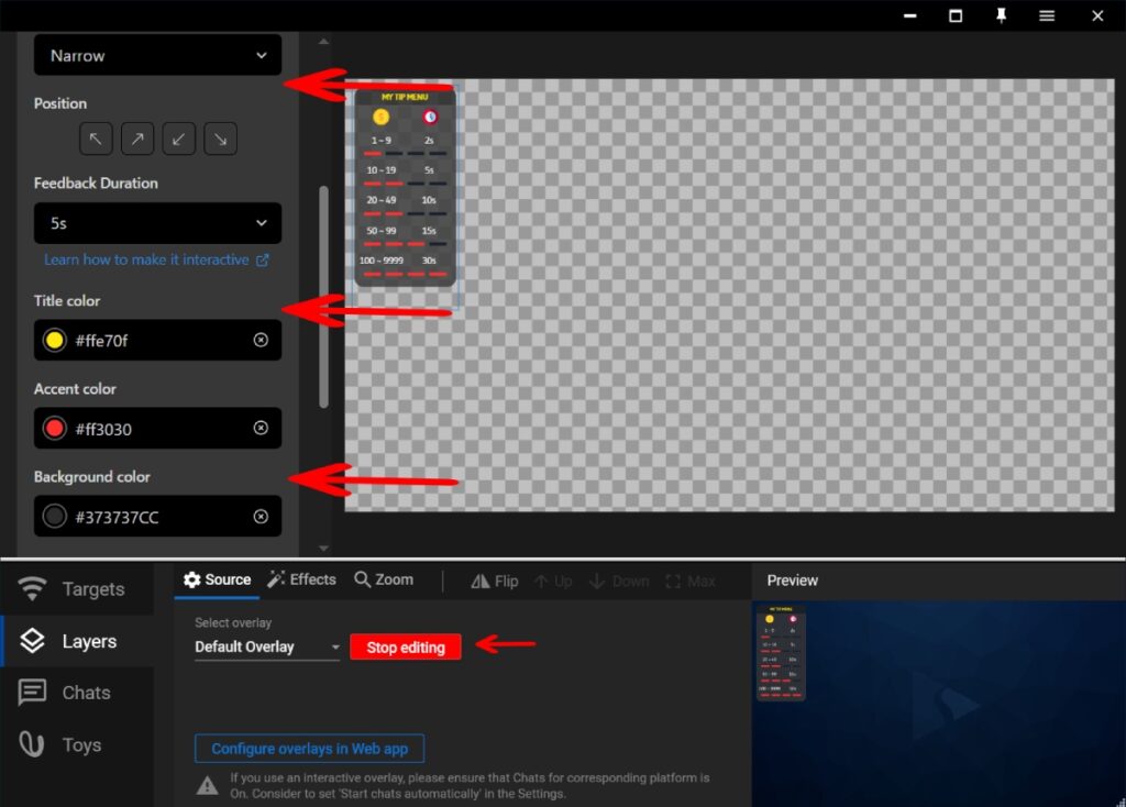 (optional) Step 10. To customize your overlay to display toy interactions on your stream, click the “Create overlay with Menu” button.