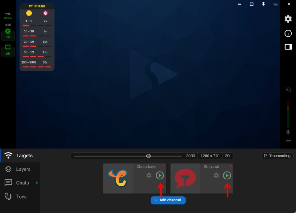 Method 1. Toy controlled by the Streamster app (works for Chaturbate, Stripchat, Cam4, CamSoda, MFC, SinParty)